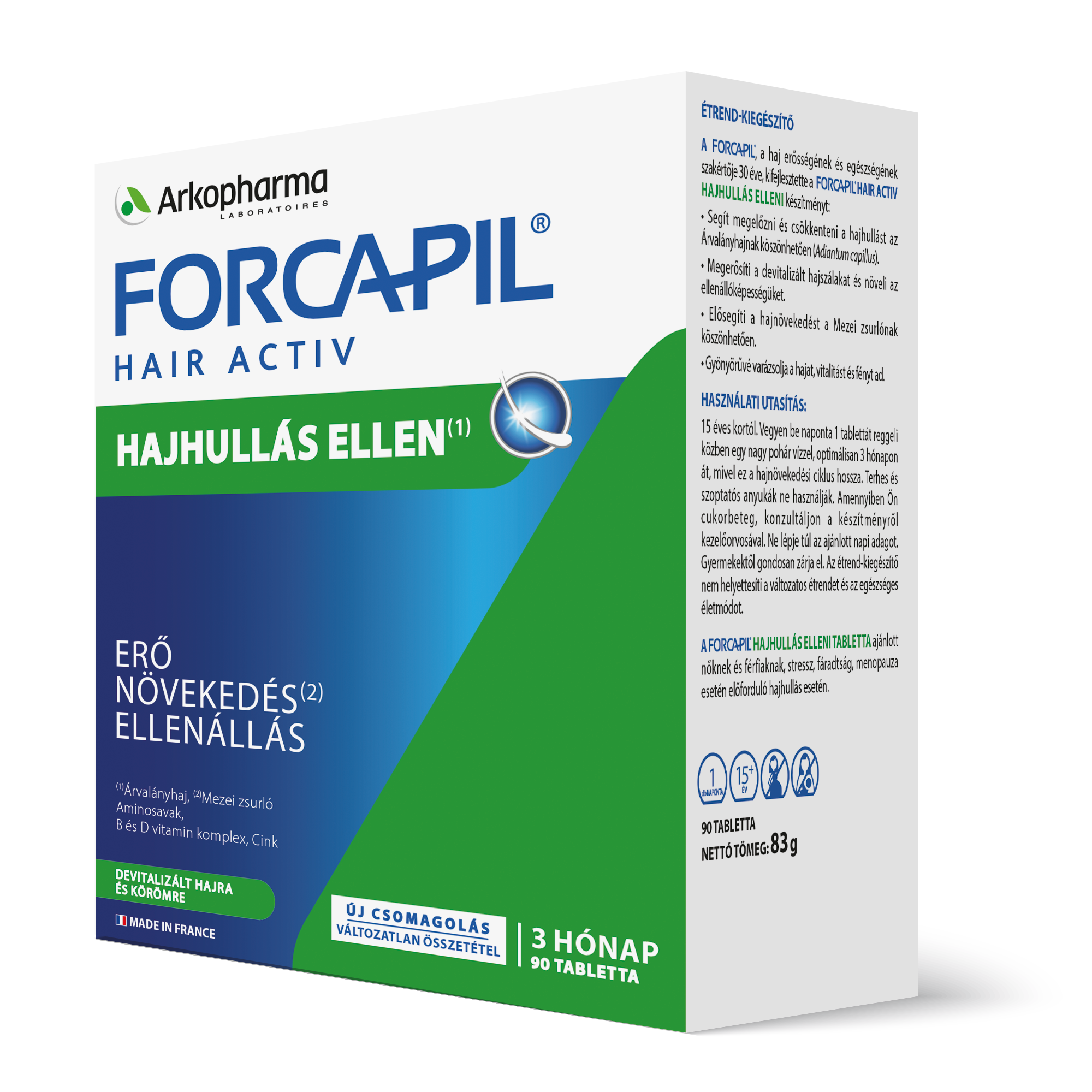 Forcapil HAIR ACTIV Hajhullás Elleni tabletta vitaminokkal, ásványi anyagokkal és gyógynövényekkel. 90 db – 3 havi adag
